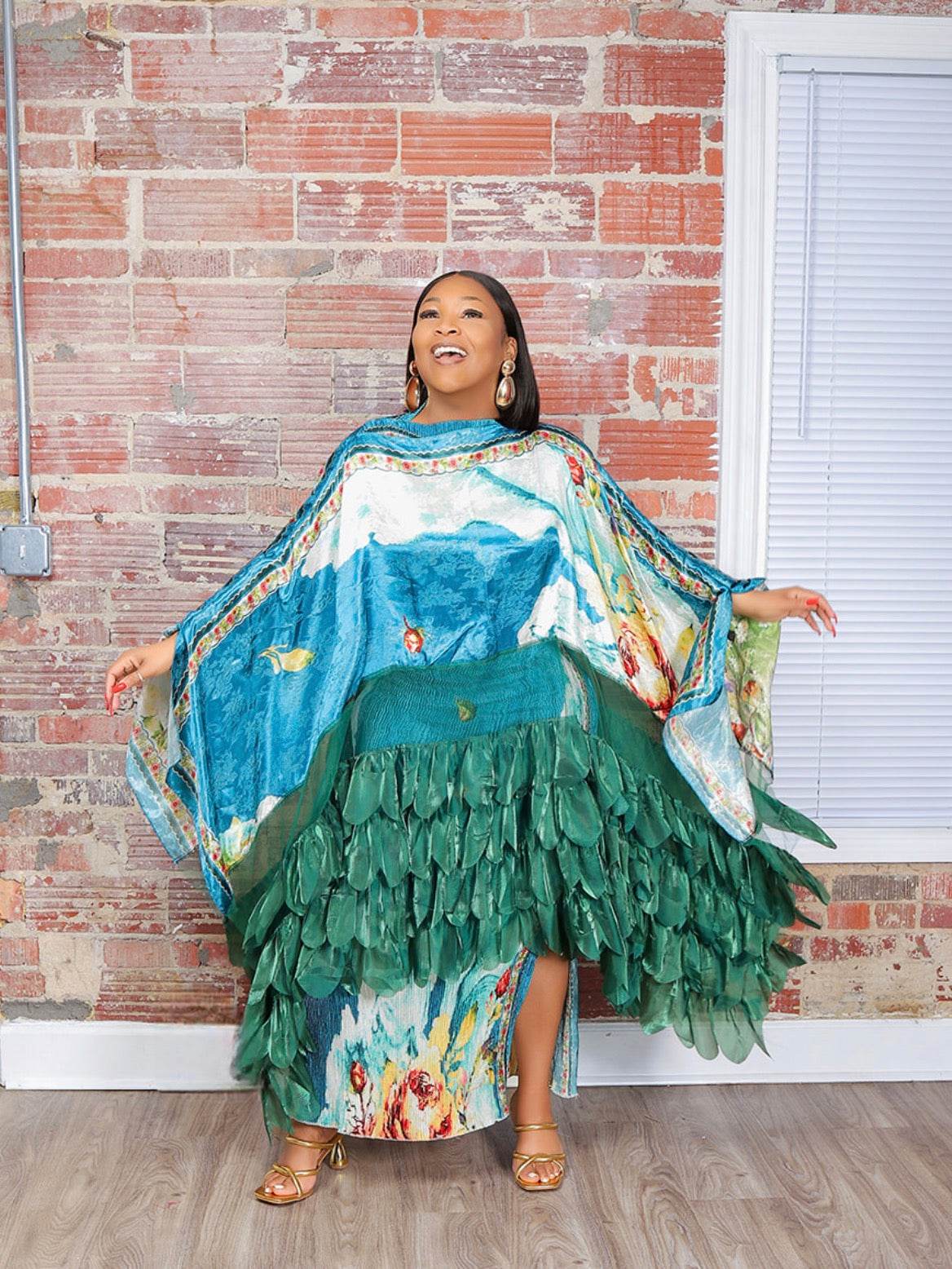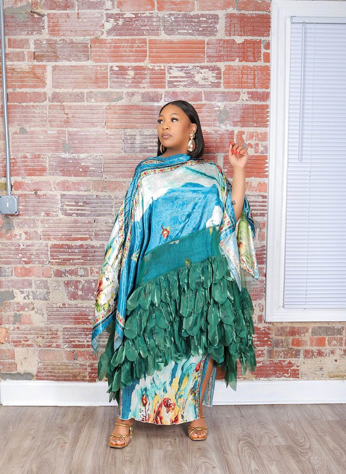 Our Emerald Empress Luxe Set is the definition of bold, artistic elegance. Featuring a stunning watercolor-inspired print in rich teal, emerald, and ivory tones with soft floral detailing — this look was made for the woman who doesn’t shrink in a room… she owns it.