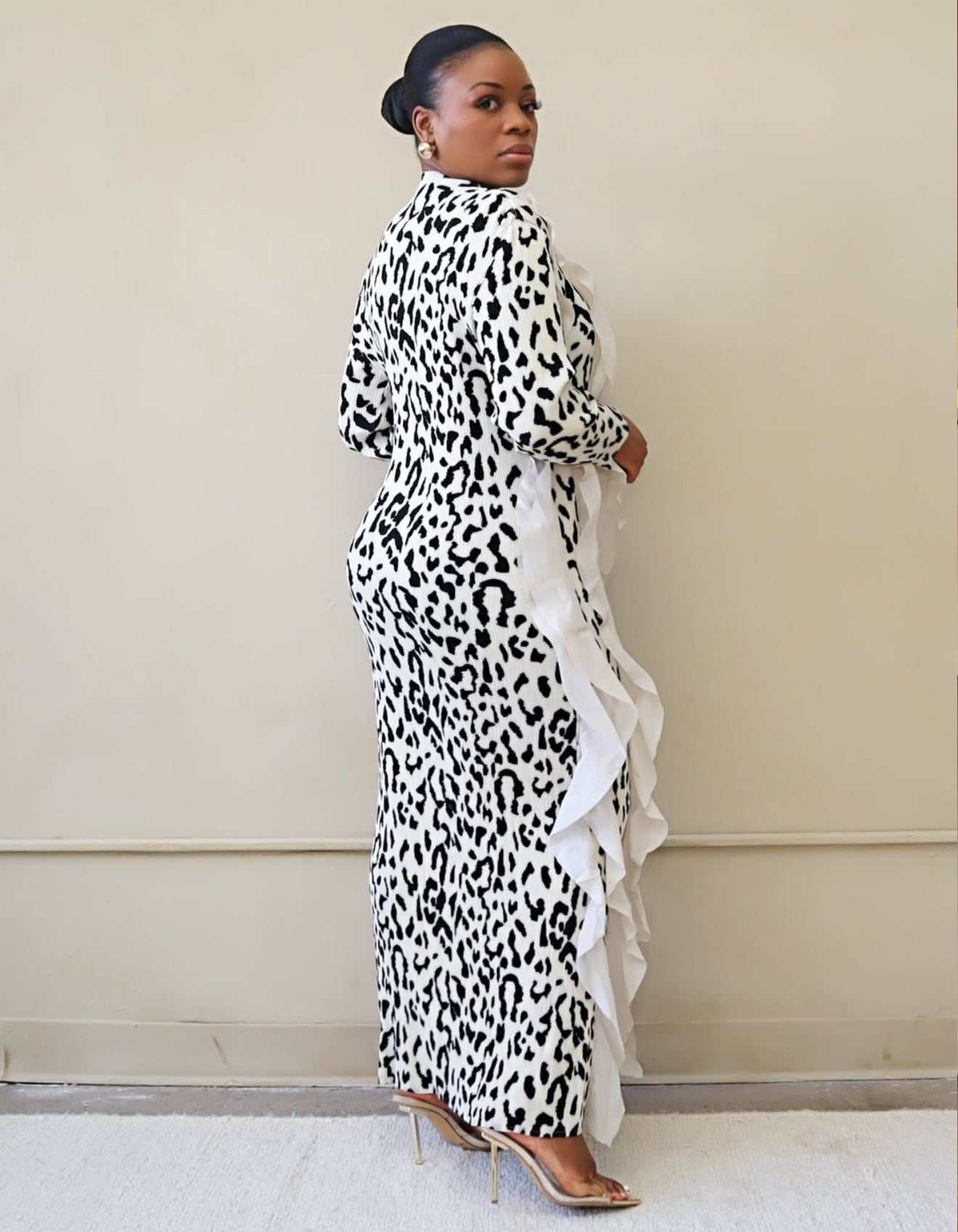 LEOPARD PRINT RUFFLE MAXI DRESS (PRE-ORDER)