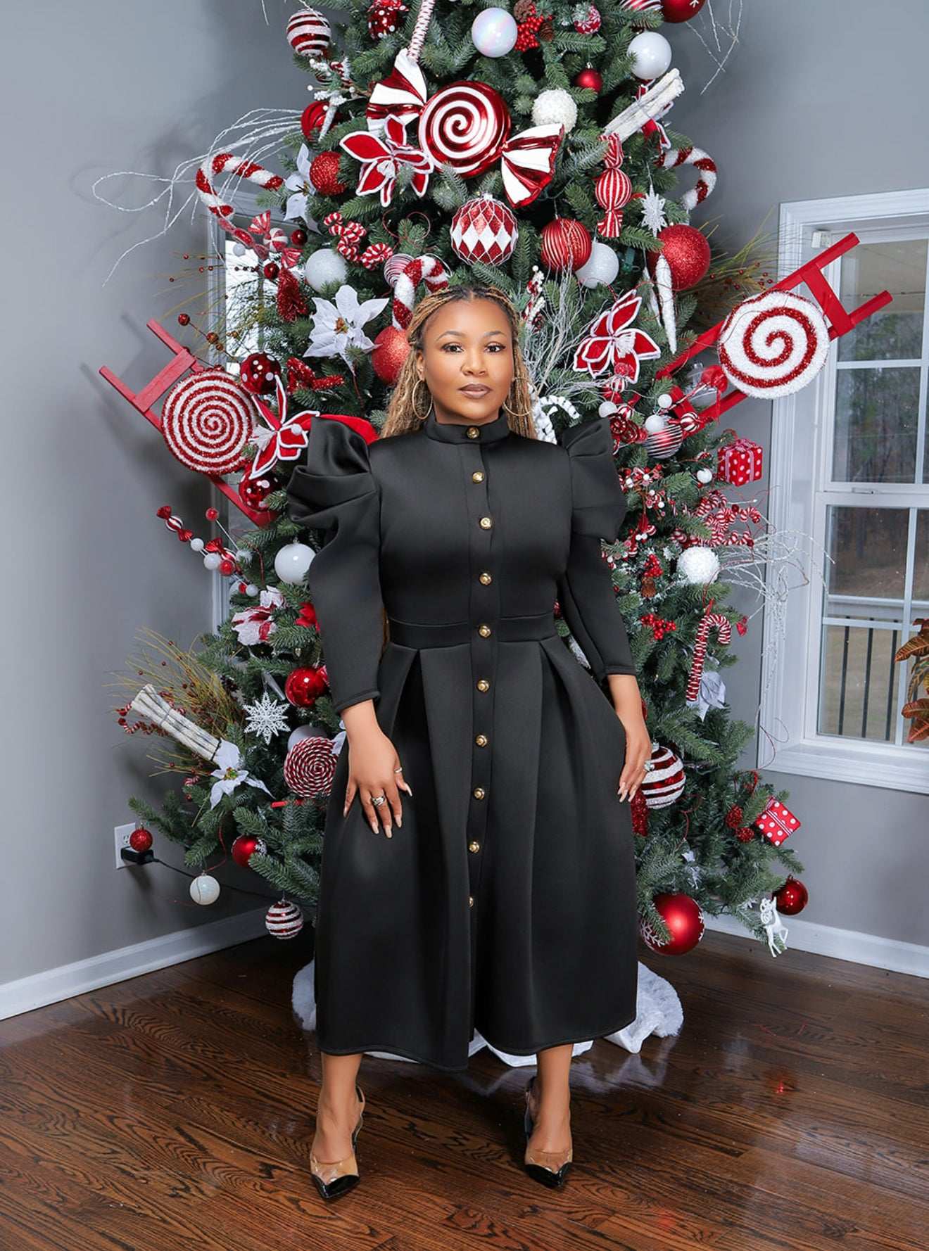 This stunning black midi features statement puff sleeves that instantly elevate the look, paired with a button-down front and a pleated skirt that flows beautifully with every step. The tailored bodice cinches the waist for a flattering silhouette, while the midi length keeps it classy and versatile.